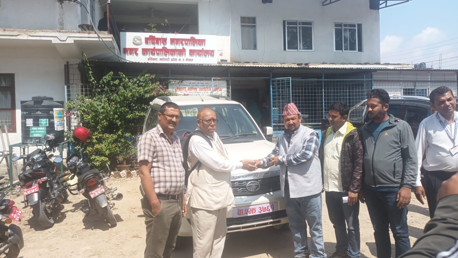 नगरप्रमुख क्षेत्रीले एक कार्यक्रमका बीच बा २ झ ३७६१ नम्बर प्लेटको गाडी बर्दिबास अस्पतालका व्यवस्थापन समितिका अध्यक्ष जयनारायण शर्मालाइ हस्तान्तरण गरे।
