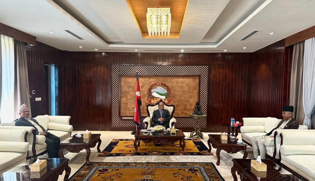 काठमाडौं। सरकारलाई पूर्णता लिन सकस परिरहेका बेला प्रधानमन्त्री पुष्पकमल दाहाल प्रचण्ड, नेपाली कांग्रेसका सभापति शेरबहादुर देउवा र एकीकृत समाजवादीका अध्यक्ष माधव नेपालबीच भेटवार्ता भएको छ।