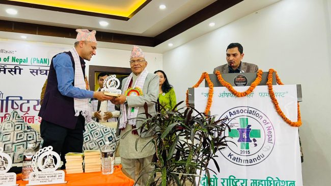 उपाध्यक्ष किरण ढकालको स्वागत र युवराज भुषालको संचालनमा सम्पन्न महाधिवेशनले फार्मेसी सेवा पुर्याएको योगदानको कदर गर्दै औषधि व्यवस्था विभागका पुर्व महानिर्देशक तथा वरिष्ठ फार्मासिष्ट नारायण ढकाल, वरिष्ठ फार्मासिष्ट बाबूराम हुमागाई र वरिष्ठ फार्मासिष्ट विवेक सिङ महतलाई सम्मान गरेको थियो।