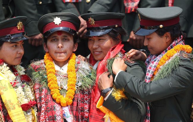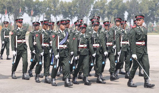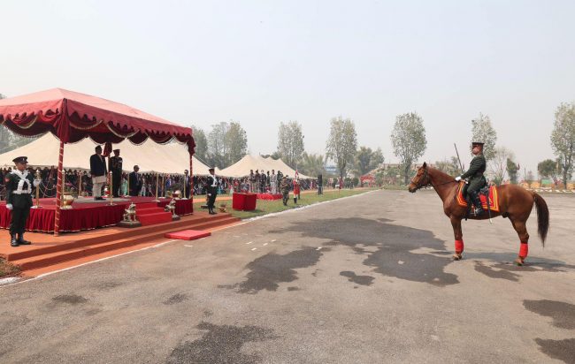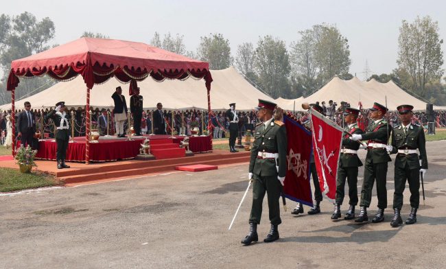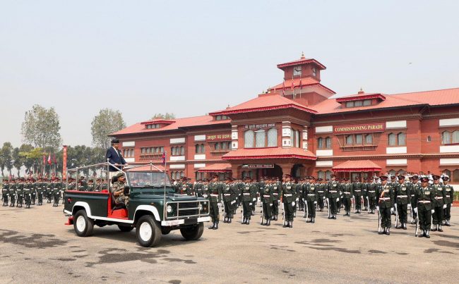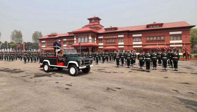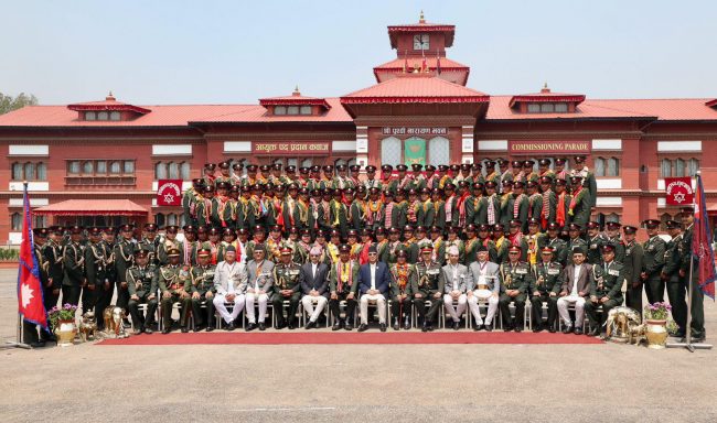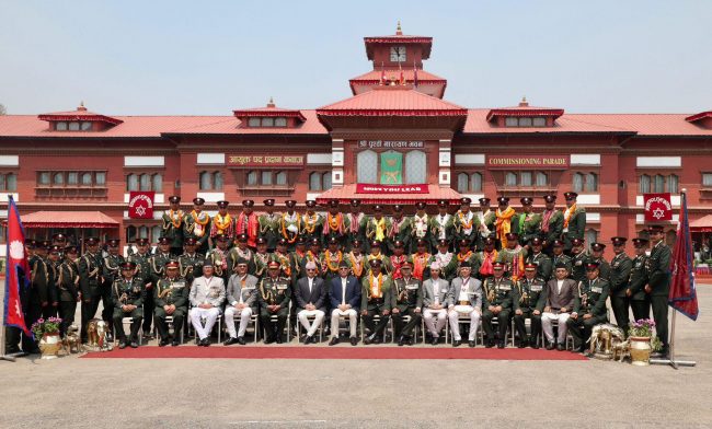 काठमाडौँ। प्रधानमन्त्री पुष्पकमल दाहाल प्रचण्डले भक्तपुरस्थित शैनिक प्रशिक्षालयमा अधिकृत क्याडेट तालिम र पदिक तथा विल्लादार अधिकृत क्याडेट तालिम शिक्षार्थीहरुलाई आयुक्त पद प्रदान कवाज कार्यक्रमको अवलोकन गरेका छन्। साथै उनले उत्कृष्ट प्रशिक्षार्थीलाई सम्मान प्रदान गरेका छन्।