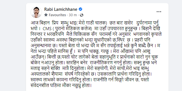 चालक घरबाट खसेको विषयमा रविको आग्रह- यस्तो बेला राजनीतिकरण नगर्नु होला