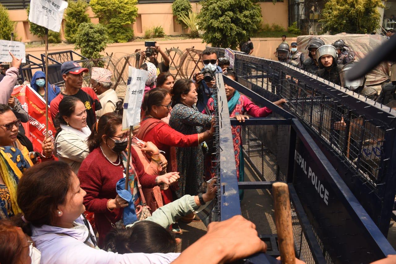 काठमाडौँ। द्वन्द्वपीडित र प्रहरीबीच धकलाधकेल भएको छ। संक्रमणकालीन न्यायसम्बन्धी प्रस्तावित विधेयकले पिडकलाई उन्मुक्ति दिन खोजिएको भन्दै द्वन्द्व पीडित संघर्ष समिति ब्यानरमा भएको प्रदर्शनमा प्रहरी र प्रदर्शनकारीबीच झडप भएको हो।