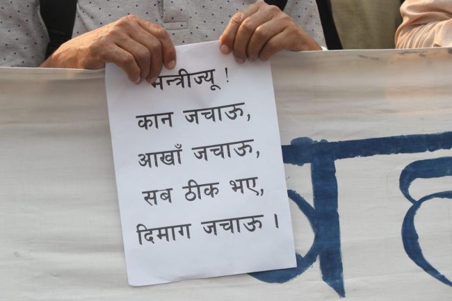 काठमाडौं । मिटरब्याजपीडितले बुधबार पनि आन्दोलन जारी राखेका छन् । शान्तिबाटिकादेखि नयाँबानेश्वरसम्म प्रदर्शन गर्दै उनीहरुले आफ्नो माग पूरा गराउन सरकारलाई दबाब दिएका छन् ।