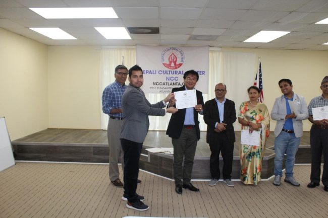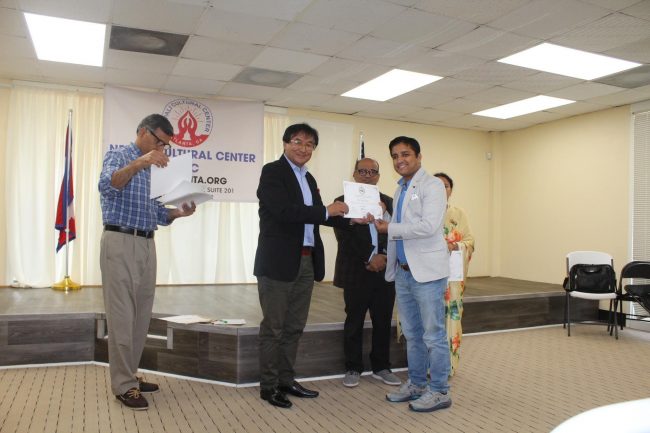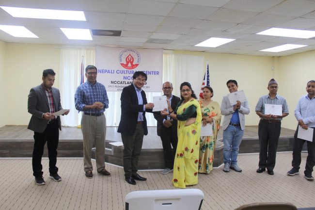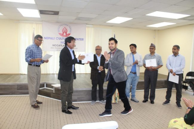 निर्वाचित सबै पदाधिकारीहरुलाई आज एक विशेष समारोहमा निर्वाचन समितिका प्रमुख आयुक्त राजा घलेले पदीय प्रमाणपत्र प्रदान गर्दै बधाई तथा शुभकामना समेत दिए।