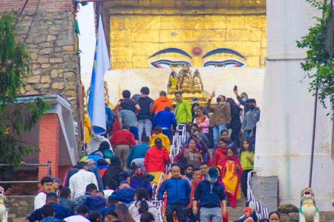 बुद्धजयन्ती : स्वयम्भूसहितका बाैद्ध गुम्बामा दर्शनार्थीको भिड (फाेटाे फिचर)