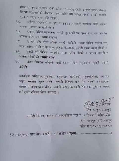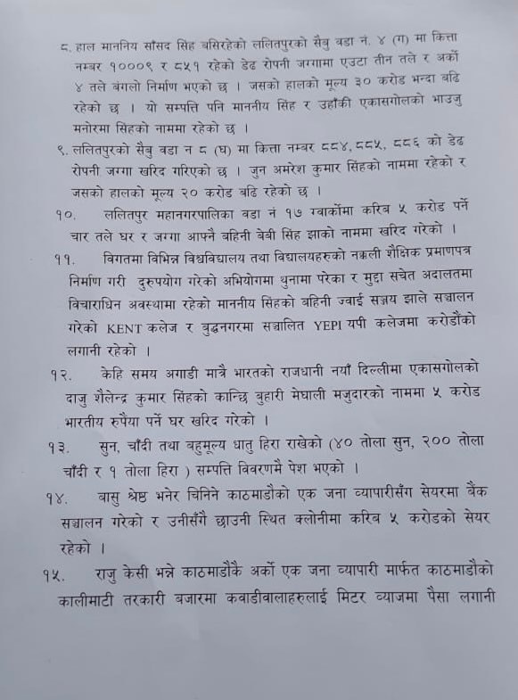 २०६३ सालबाट राजनीतिमा उदाएका सिंहको आर्थिक फड्को नै भ्रष्टाचारको कारण रहेको निवेदनमा ठाकुरले दाबी गरेका छन्।