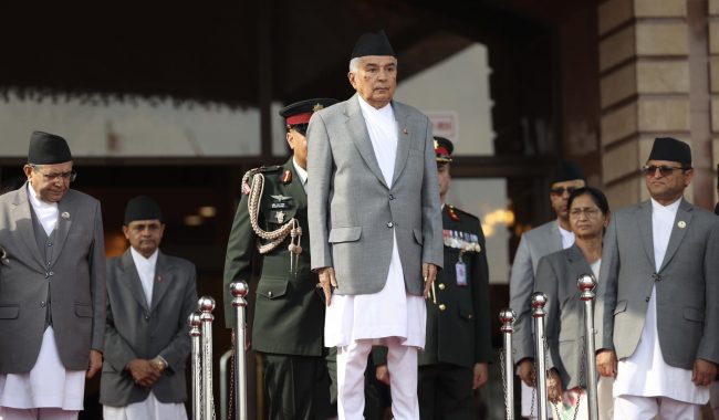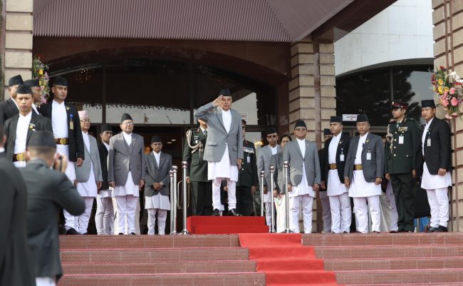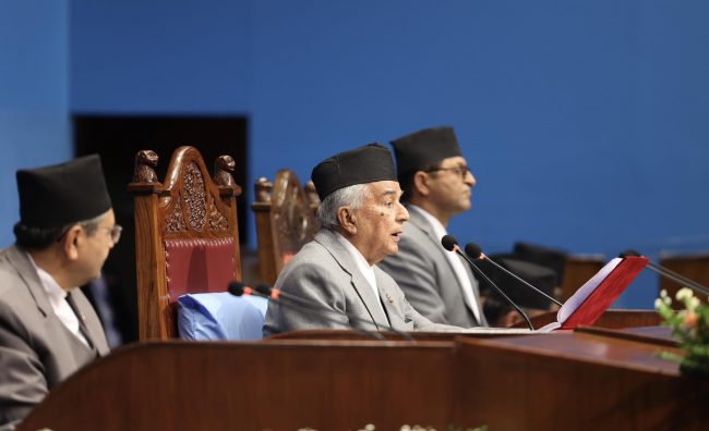 सङ्घीय संसद् भवन नयाँबानेश्वरमा अपराह्न ४ बजे सुरु भएको सदनको संयुक्त बैठकलाई राष्ट्रपति पौडेलले सम्बोधन गरिरहेका छन्। सङ्घीय संसद्को कुनै सदनको बैठक वा दुवै सदनको संयुक्त बैठकलाई राष्ट्रपतिले सम्बोधन गर्ने र त्यसका लागि सदस्यको उपस्थिति आह्वान गर्नसक्ने संवैधानिक व्यवस्था छ ।