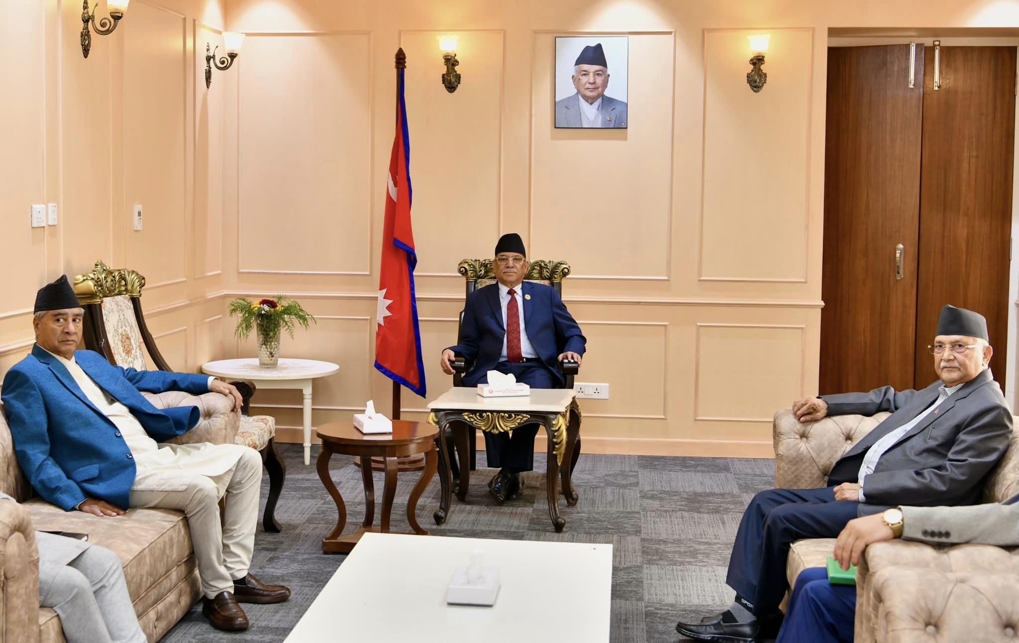 छलफलमा प्रधानमन्त्री पुष्पकमल दाहाल, कांग्रेस सभापति शेरबहादुर देउवा र एमाले अध्यक्ष केपी ओलीलगायतका नेताको सहभागिता छ।