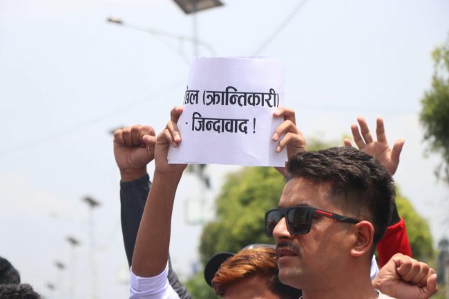 नक्कली भुटानी शरणार्थी प्रकरणसम्बन्धी मुद्दाको अदालतमा थुनछेक बहस भइरहँदा विप्लव कार्यकर्ता प्रदर्शनमा उत्रिएका थिए।