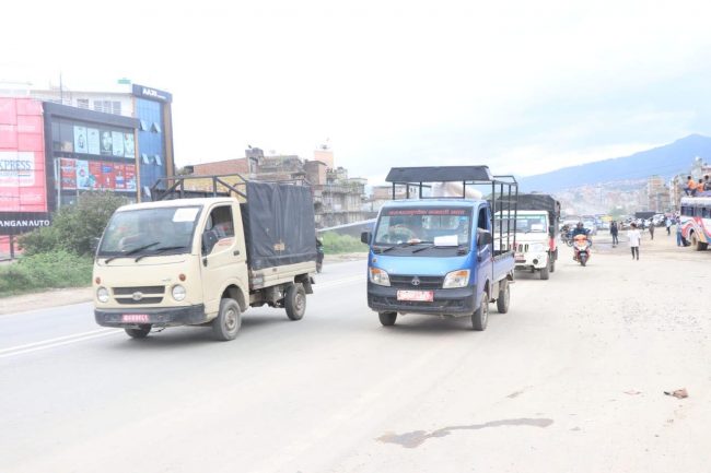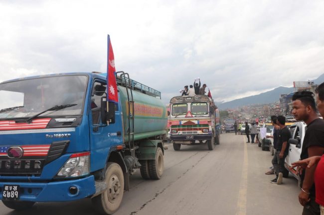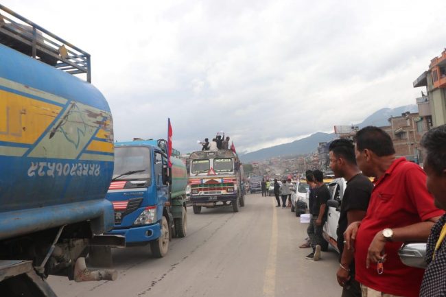 काठमाडौं सितापाइला क्षेत्रमा ट्याक्सी, ट्रक, टिप्पर, खानेपानी ट्यांकर, साना ढुवानी गाडी, टेम्पो, माइक्रोबसलगायतका सवारीसाधनसहित उनीहरु प्रदर्शनमा उत्रिएका हुन्।