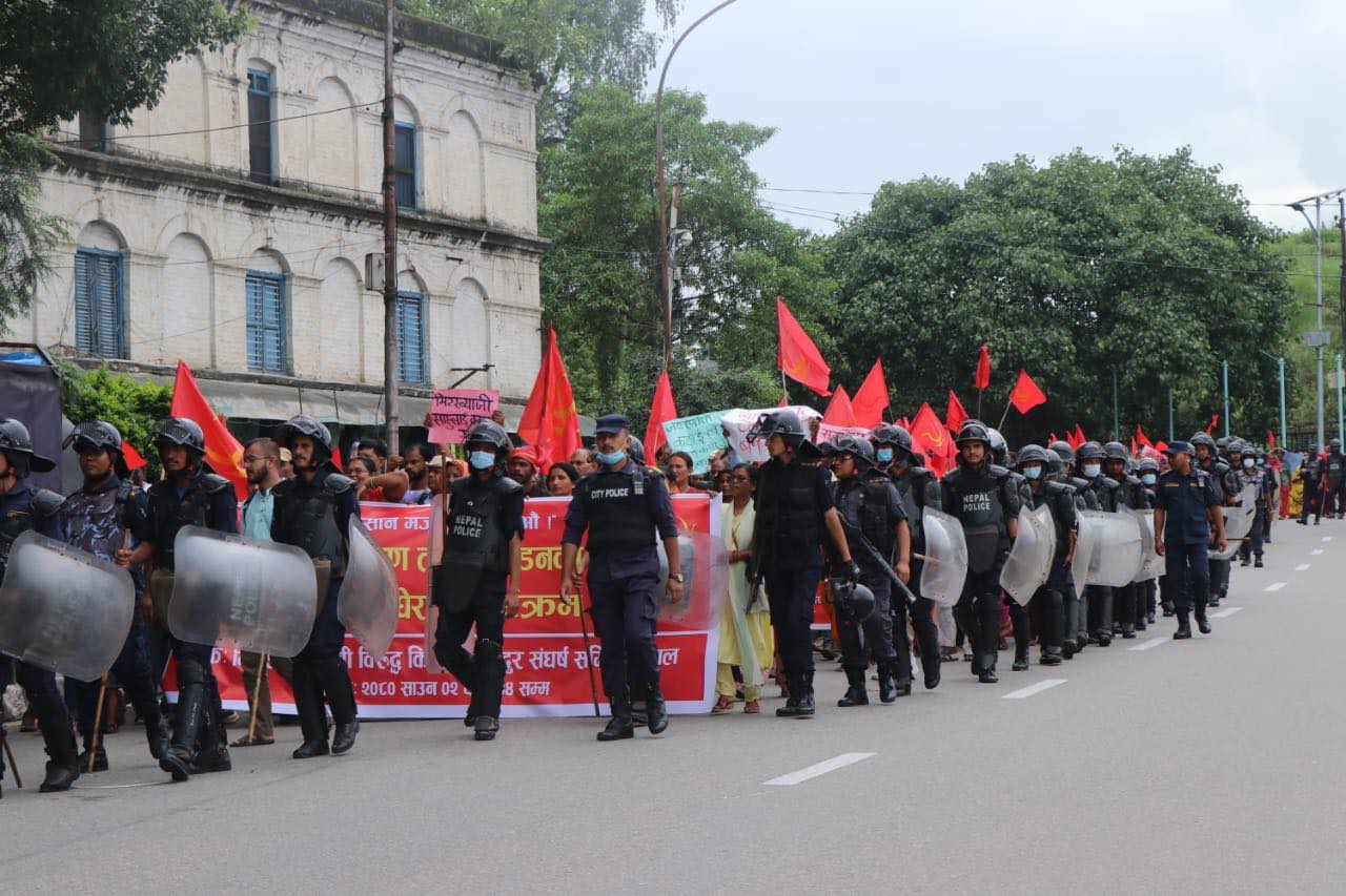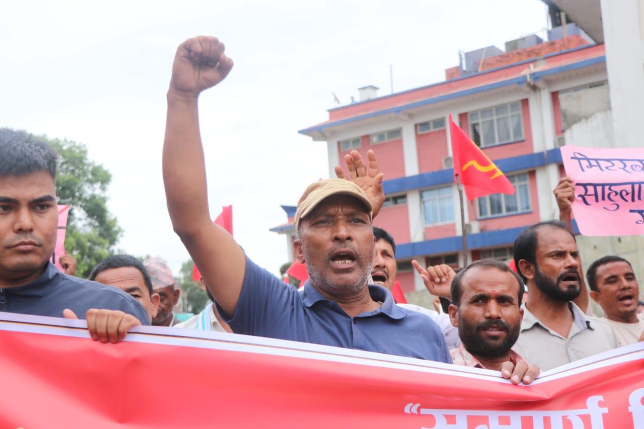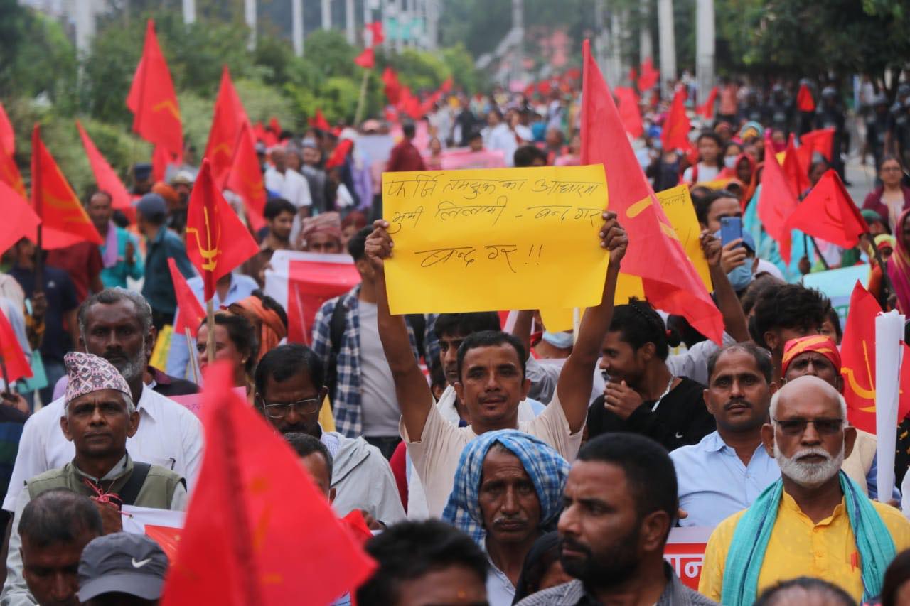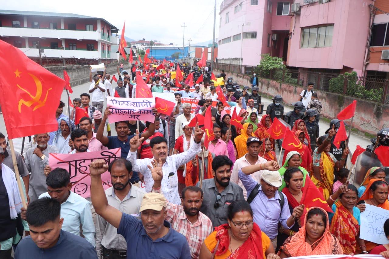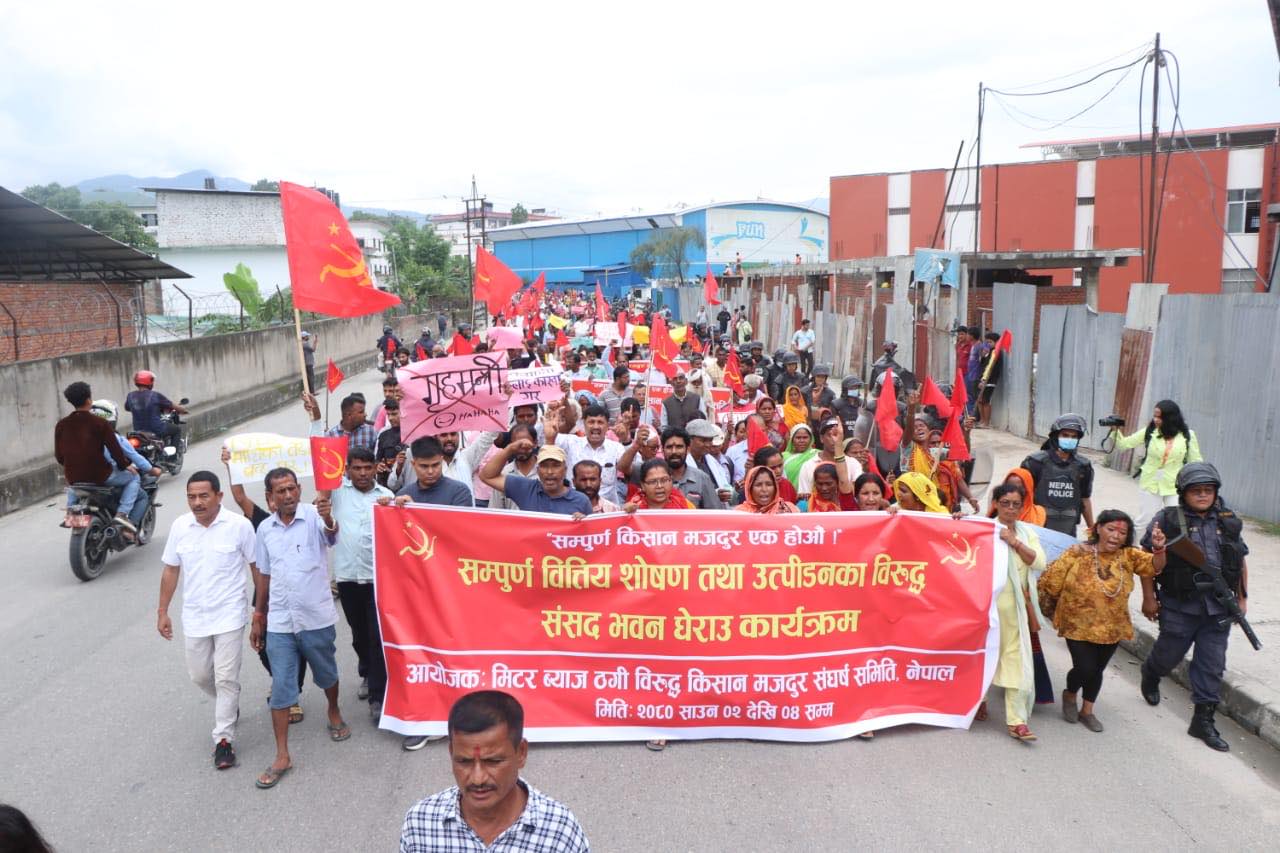 मंगलबार मिटरब्याज तथा ठगीविरुद्ध किसान मजदुर संघर्ष समितिले काठमाडौंको शान्तिवाटिकादेखि बानेश्वरसम्म प्रदर्शन गरेको हो।