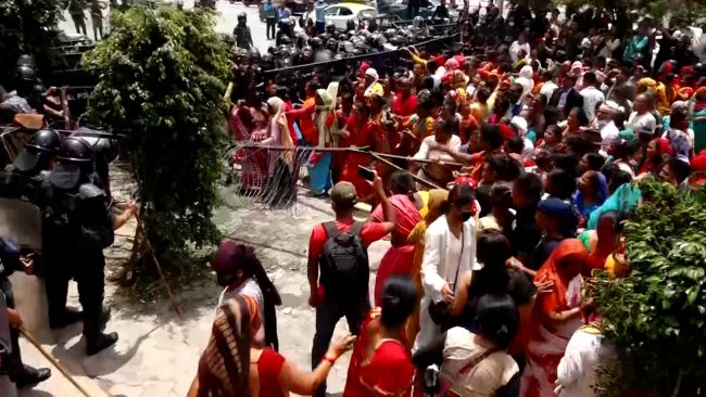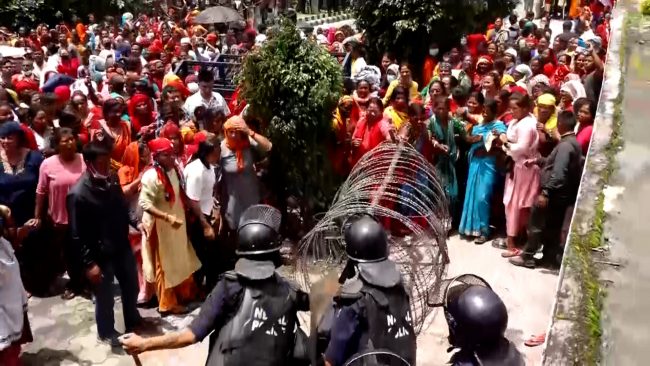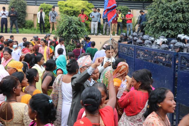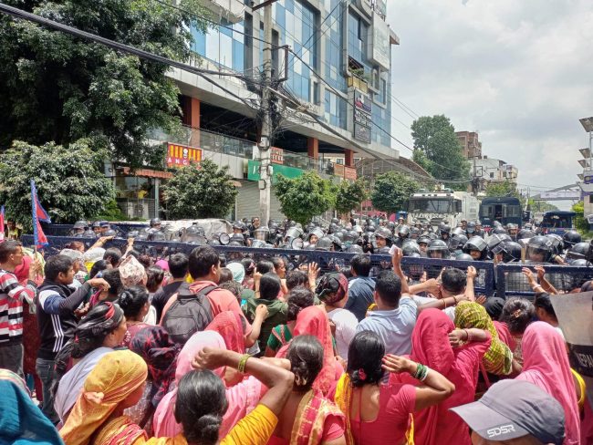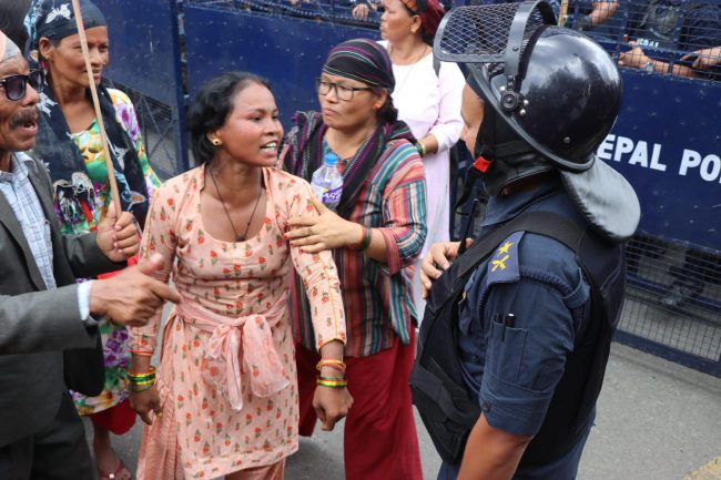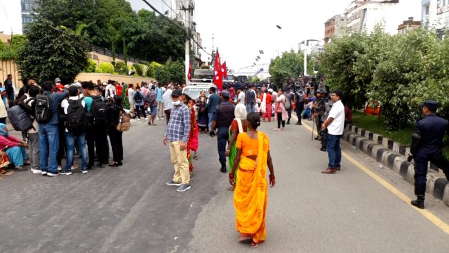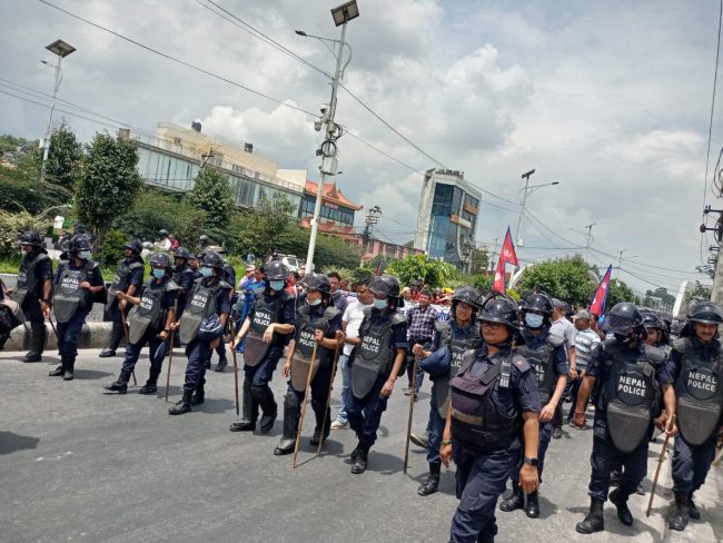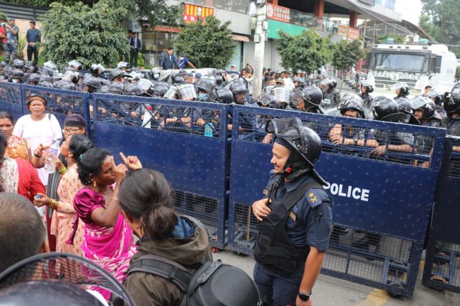 लघुवित्त पीडित र प्रहरीबीच नयाँ बानेश्वरमा धकेलाधकेल (फाेटाेसहित)