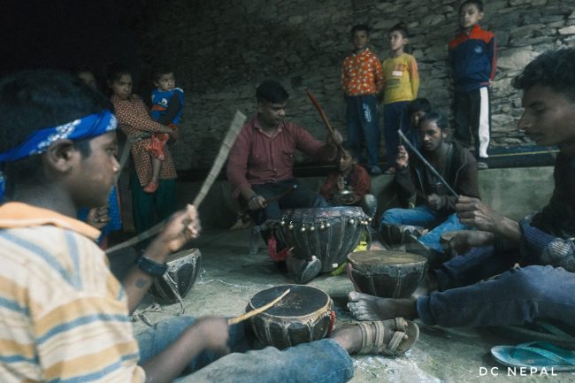 बैतडी। साउने झरीकाकारण बाक्लो हुस्सु लागेर प्रायजसाे अन्धकार देखिने बैतडीकाे खाेडपे बजारमा आजभाेलि साँझकाे समयमा एक छुट्टै प्रकारको उत्साह देख्न पाइन्छ। डिसी नेपालले खाेड्पे बजार पुग्दा बजारका ध्याउलीयाहरु घर बाहिर आगो बाल्दै छालाबाट बनेका बाजाहरु तताउँदै गरेका भटिन्छन्।