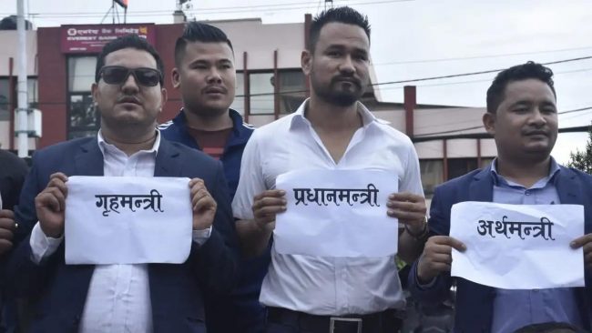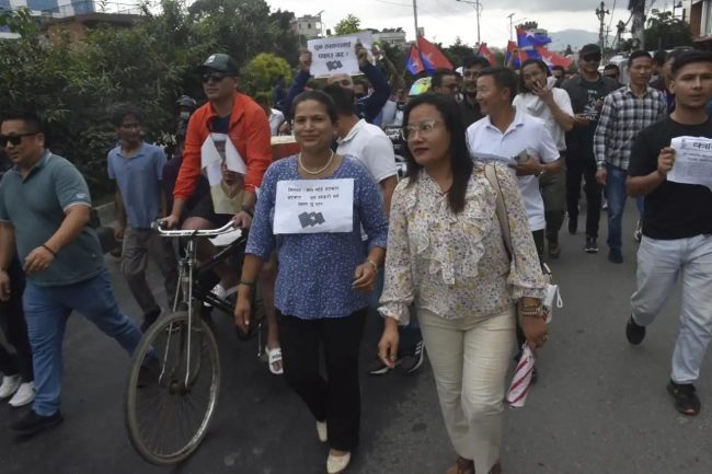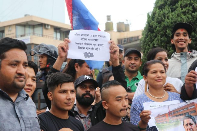 युवाहरूले विभिन्न प्ले–कार्डसहितका समाग्रीहरू प्रदर्शन गरेका थिए।