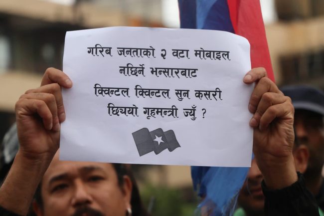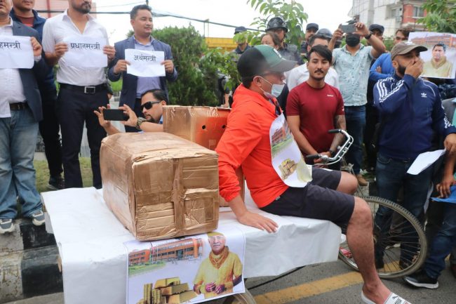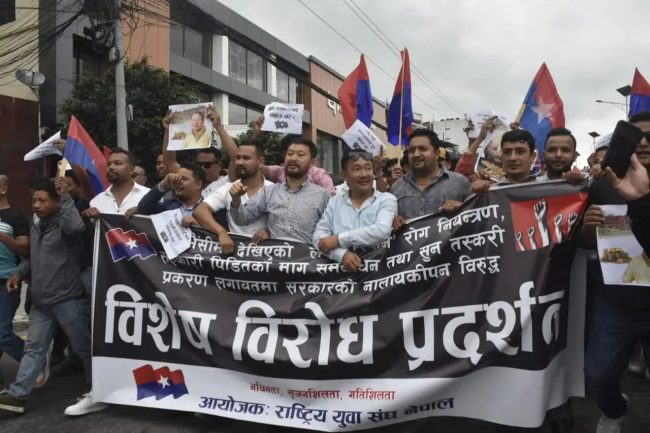 शनिबार काठमाडौंमा युवा संघले गाईभैँसीमा देखिएको लम्पीस्किन रोग नियन्त्रण, सहरकारी पीडितको माग सम्बोधन तथा सुन तस्करी प्रकरणलगायतका विषयको समाधान हुनुपर्ने माग राख्दै विरोध प्रदर्शन गरेको हो।
