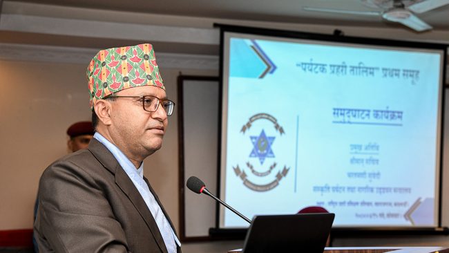 पर्यटक प्रहरीका जवान तथा जुनियर प्रहरी अधिकृतको प्रथम समूहको तालिम समापनमा बोल्दै उनले पर्यटन क्षेत्रको विकासका लागि पर्यटन ऐनलाई संशोधन गर्न मन्त्रालय लागेको बताएका हुन्।