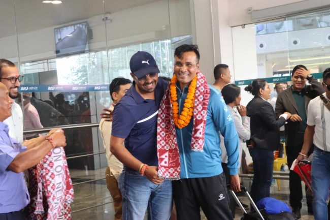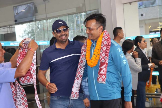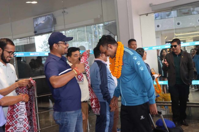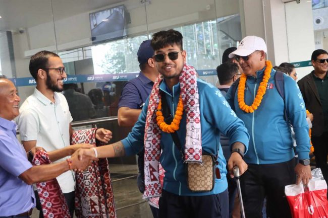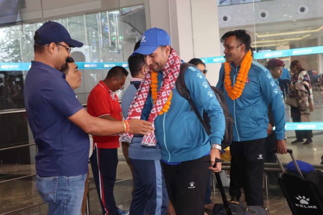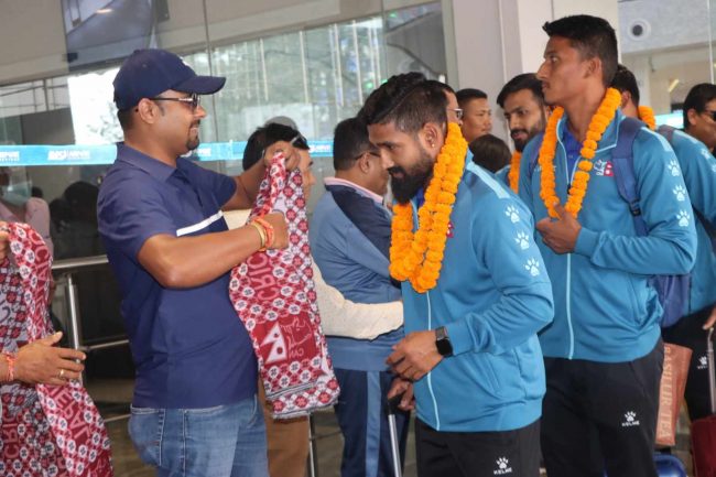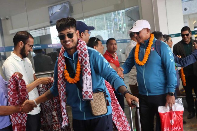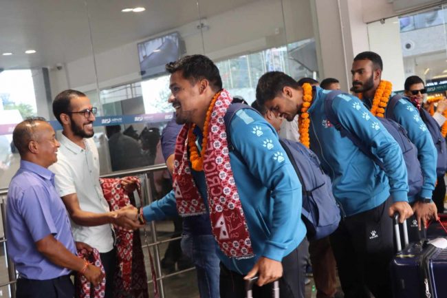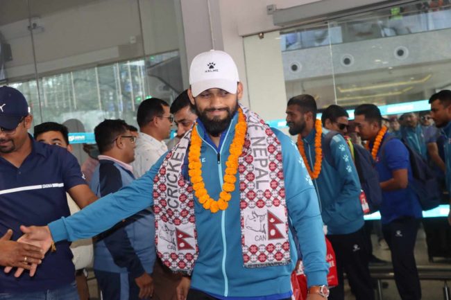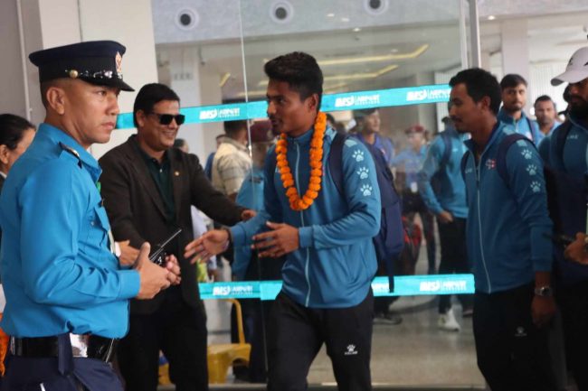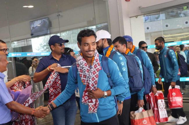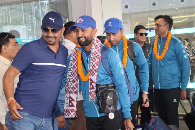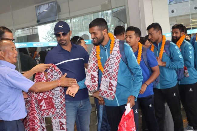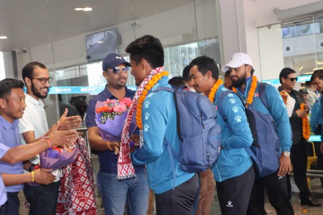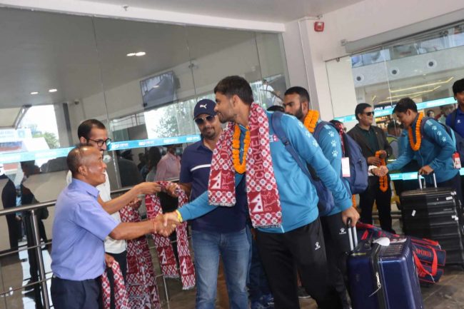 काठमाडौं। एसिया कप क्रिकेट खेल्न गएको नेपाली टोली बुधबार स्वदेश फर्किएकाे छ। विश्वकप बिजेता टोली भारत र पाकिस्तानसँग ऐतिहासिक प्रतिस्पर्धा गरेको नेपाली टोली आज फर्किएकाे हाे।