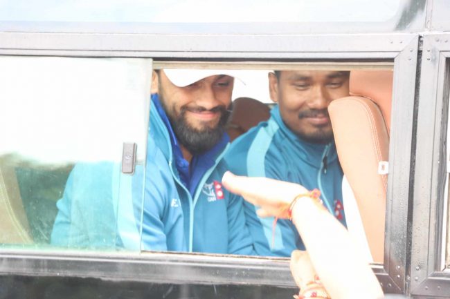 नेपाली टोलीलाई स्वागत गर्न सशस्त्र प्रहरीको ब्याण्ड टोलीसमेत विमानस्थलमा लगिएको थियो। ब्याण्ड टोलीले मंगलधुन बजाएर टोलीको स्वागत गरेको थियो। नेपाल क्रिकेट संघका पदाधिकारी तथा क्रिकेट समर्थकले टिमलाई स्वागत गरेका हुन्।