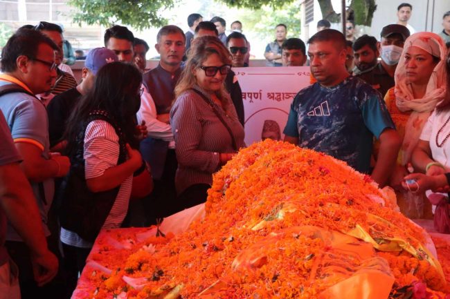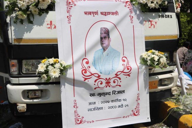 काठमाडौं। काठमाडौं महानगरपालिका वडा नम्बर १६ का अध्यक्ष मुकुन्द रिजालको पार्थिव शरीर राष्ट्रिय सभागृहमा राखिएको छ।