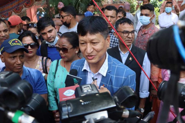 सभागृह पुगेर मेयर बालेन शाहले रिजालको पार्थिव शरीरमा काठमाडौं महानगरको झण्डा ओढाएर श्रद्धाञ्जली अर्पण गरे।