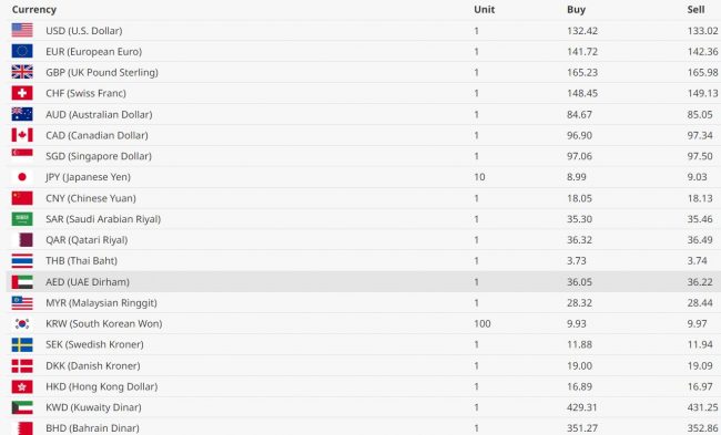 नेपाल राष्ट्र बैंकका अनुसार आज अमेरिकन डलरको खरिद दर १३२ रूपैयाँ ४२ पैसा र बिक्री दर १३३ रूपैयाँ ०२ पैसा कायम रहेकाे छ भने युराेपियन युरो एकको खरिद दर १४१ रूपैयाँ ७२ पैसा र बिक्री दर १४२ रूपैयाँ ३६ पैसा रहेको छ।