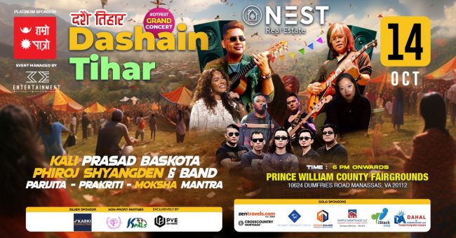 अमेरिकाको भर्जिनियाको मनासास्थित प्रिन्स विलियम काउन्टी फेयरग्राउण्डसमा हुने कार्यक्रम १४ अक्टोबरमा स्थानीय समयअनुसार बेलुकी ६ बजेपछि सुरु हुनेछ । महोत्सवमा भव्य कन्सर्ट पनि हुनेछ जसमा गायक तथा संगीतकार काली प्रसाद बास्कोटा, फिरोज स्याङ्देन र ब्याण्ड, परिजिता बास्तोला, प्रकृति र मोक्ष मन्त्रको प्रस्तुती रहनेछ ।