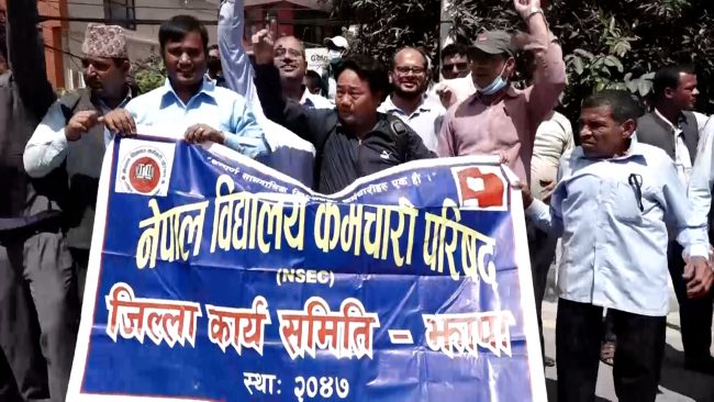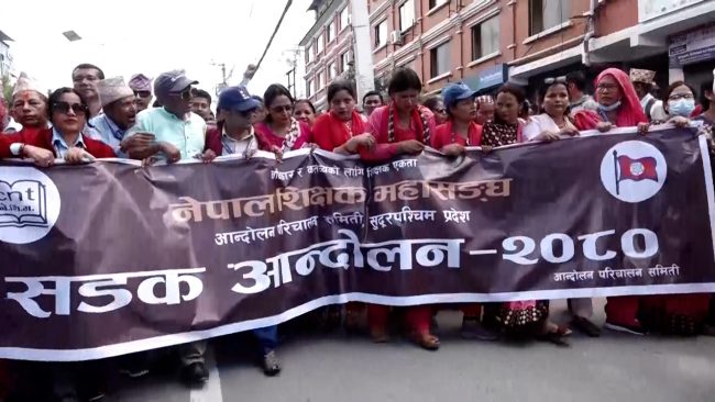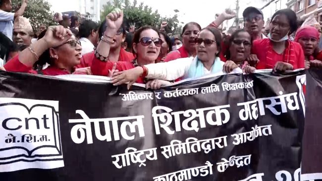काठमाडाैैं। संसदमा दर्ता भएको विद्यालय शिक्षासम्बन्धी विधेयकका केही प्रावधानमा असन्तुष्टि जनाउँदै देशभरका शिक्षकहरुले बिहीबार पनि काठमाडौंमा विरोध प्रदर्शन गरेका छन्।