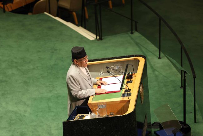 संयुक्त राष्ट्रसंघको महासभालाई सम्बोधन गर्दै प्रधानमन्त्री प्रचण्डले हतियारमा खर्च बढ्दै जाँदा २०३० को एजेन्डा कार्यान्वयनका लागि स्रोतसाधनको अभाव भएको बताए। यस्तो परिस्थितिलाई सच्याउँदै शान्ति, समृद्धि र प्रगतिका साझा लक्ष्यहरूमा ध्यान केन्द्रित गर्न प्रधानमन्त्री दाहालले विश्व समुदायलाई अपिल पनि गरेका छन्। नेपालको राजनीतिक गतिले स्थिर आकार लिएकाले अब नेपालको ध्यान आर्थिक रूपान्तरणको एजेन्डामा रहेको समेत उनले उल्लेख गरे।