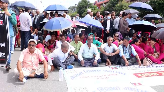 शिक्षकहरुको प्रदर्शनका कारण नयाँ बानेश्वर क्षेत्र अस्तव्यस्त