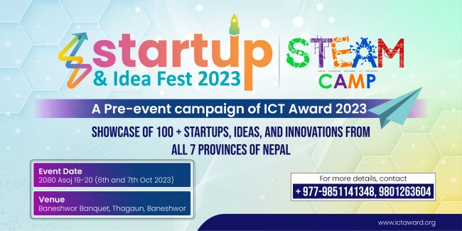 काठमाडाैं। असोज १९ र २० गते काठमाडाैंकाे बानेश्वर ब्याक्वेटमा स्टार्टअप एण्ड आइडिया फेस्टसँगै स्टिम क्याम्पको आयोजना हुने भएको छ।