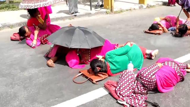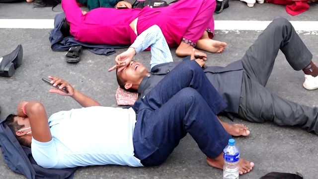 सडकमा सुतेर राहत शिक्षकको प्रदर्शन
