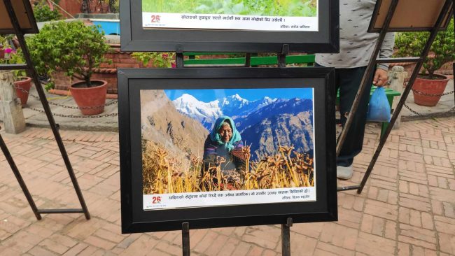 काठमाडौं। राष्ट्रिय फोटो पत्रकार समूह,नेपाल र एजिङ नेपालको संयुक्त आयोजनामा ‘तस्वीरमा ज्येष्ठ नागरिक’ फोटो प्रदर्शनी गरिएको छ। ललितपुरको पाटन दरबार क्षेत्रमा अन्तर्राष्ट्रिय ज्येष्ठ नागरिक दिवसको उपलक्ष्यमा हिमाल, पहाड र तराईका ज्येष्ठ नागरिकहरुको तस्वीर प्रदर्शनी गरिएको हो।