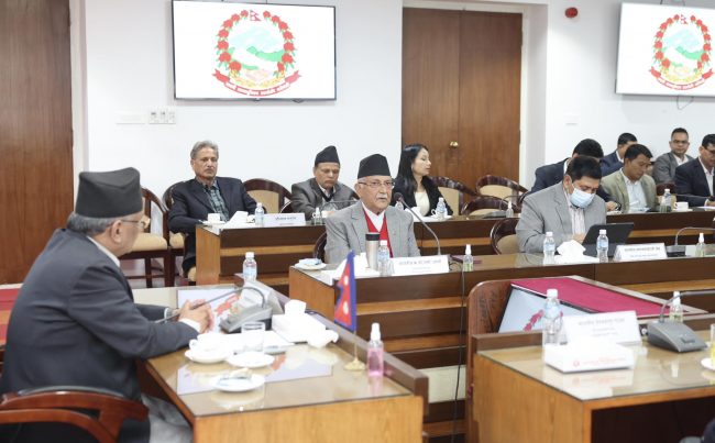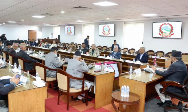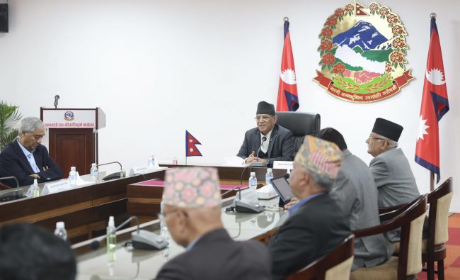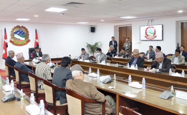 प्रमुख दलका शीर्ष नेताहरूको बैठक : गणतन्त्रको रक्षार्थ आ-आफ्नो तहबाट भूमिका खेल्ने प्रतिबद्धता