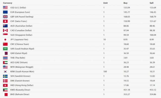 यस्तै आज अमेरिकी डलरको खरिद दर १३३ रुपैयाँ ४ पैसा र बिक्री दर १३३ रुपैयाँ ६४ पैसा रहेको छ । युरो एकको खरिद दर १४५ रुपैयाँ ७७ पैसा र बिक्री दर १४३ रुपैयाँ ४१ पैसा रहेको छ।