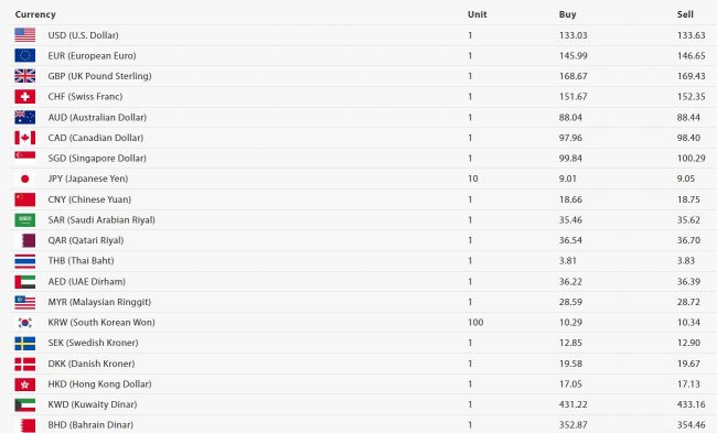 राष्ट्र बैंकले आजका लागि अमेरिकी डलरको १ को खरिद दर १३३ रुपैयाँ ०३ पैसा र बिक्री दर १३३ रुपैयाँ ६३ पैसा कायम गरेको छ भने युरोपियन युरो एकको खरिद दर १४५ रुपैयाँ ९९ पैसा र बिक्री दर १४६ रुपैयाँ ६५ पैसामा कारोबारको अनुमति दिएको छ।