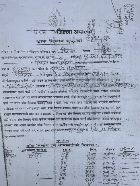 जिल्ला प्रशासन कार्यालयले पटक पटक पत्र काटेर छलफलमा बोलाए पनि योगन्द्र उपस्थित नहुने बताए। उनीहरु बिच पछिल्लो पटक यहि मंसिर ११ गतेको छलफलमा योगेन्द्रले १४ कट्टा जमिन किनेको र बाँकी जमिन आफूसँग लिएको ऋण बापत अदालतबाट जमिन डाक लिलामगरी लिएको उल्लेख भएको छ।