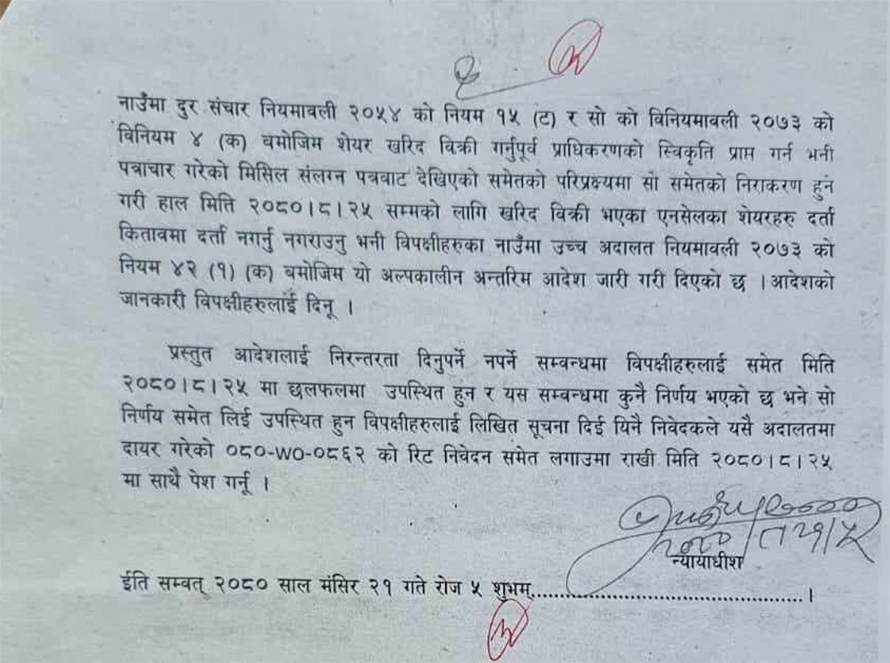 एनसेलको सेयर खरिद बिक्री रोक्न उच्च अदालतको अल्पकालीन आदेश