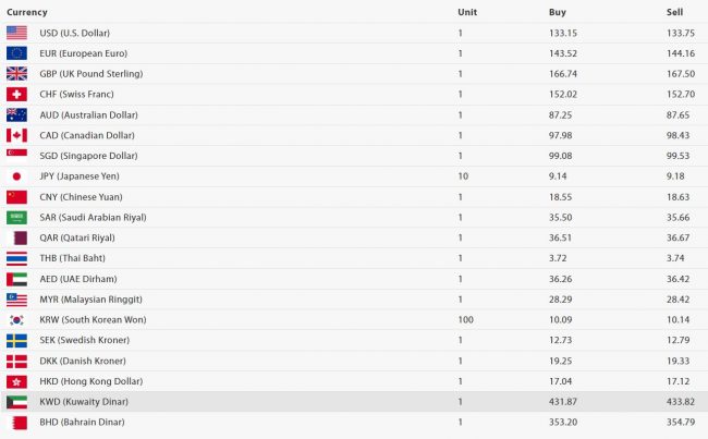 त्यस्तै, एक युरोपियन युरोको खरिददर १४३ रुपैयाँ ५२ पैसा र बिक्रीदर १४४ रुपैयाँ १६ पैसा रहेको छ। अष्ट्रेलियन एक डलरको खरिददर ८७ रुपैयाँ २५ पैसा र विक्रिदर ८७ रुपैयाँ ६५ पैसा रहेको बैंकले जनाएको छ।