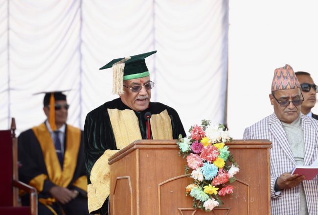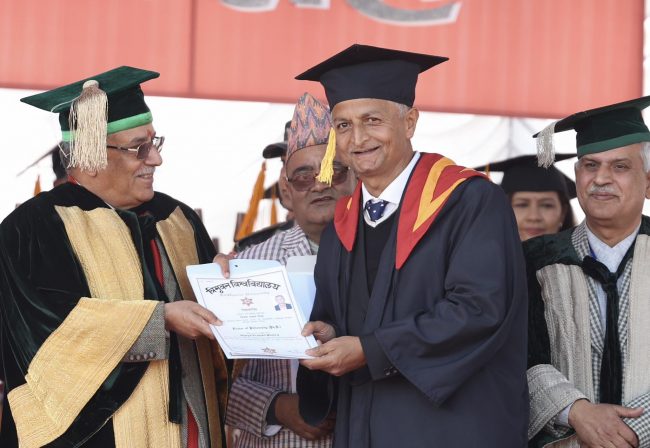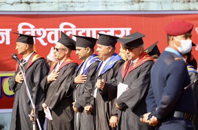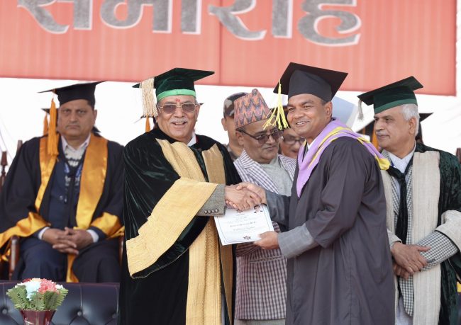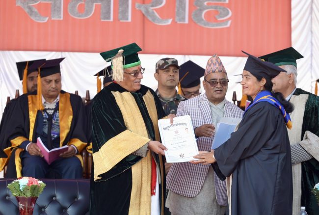 त्रिपुरेश्वरस्थित दशरथ रंगशालामा भएको समारोहमा राष्ट्रपति रामचन्द्र पौडेलको उपस्थितिमा प्रधानमन्त्री एवं कुलपति पुष्पकमल दाहाल ‘प्रचण्ड’ बाट विद्यार्थीहरु दीक्षित भएका हुन्।