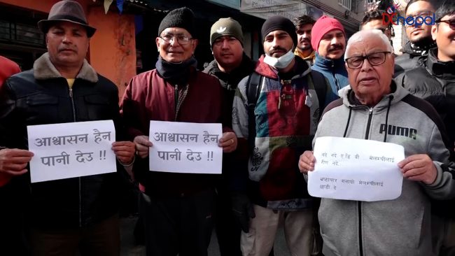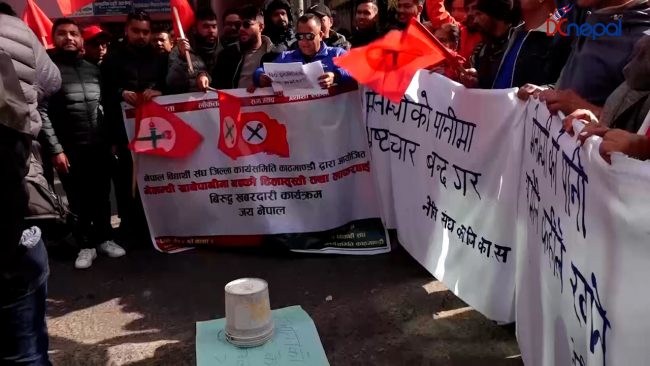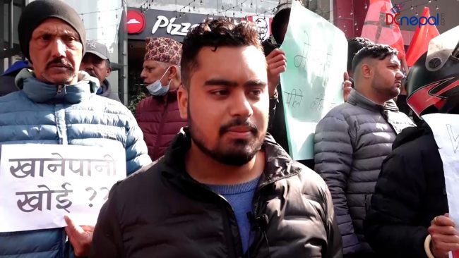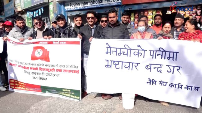 मेलम्ची खानेपानीमा ढिलासुस्ती भएकाे भन्दै नेविसंघकाे प्रदर्शन (तस्वीरसहित)