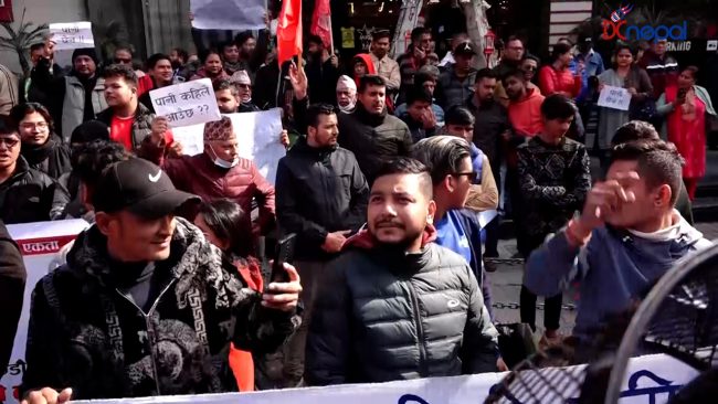 काठमाडाैं। मेलम्ची खानेपानीमा भएको ढिलासुस्तीबिरुद्ध नेपाल विद्यार्थी संघले काठमाडौंमा विरोध प्रदर्शन गरेको छ।