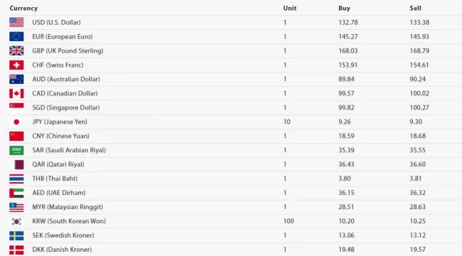 काठमाडौं। नेपाल राष्ट्र बैंकले आज बिहीबारका लागि विदेशी मुद्राको विनिमय दर तोकेको छ। अमेरिकी डलर एकको खरिद दर १३२ रुपैयाँ ७८ पैसा र बिक्री दर १३३ रुपैयाँ ३८ पैसा पुगेको छ।