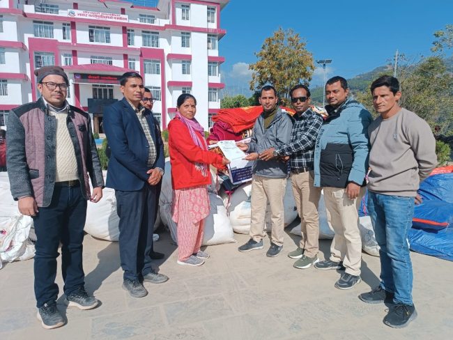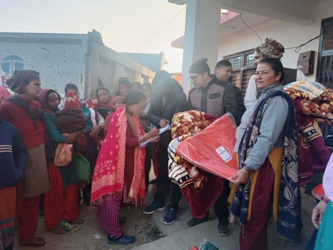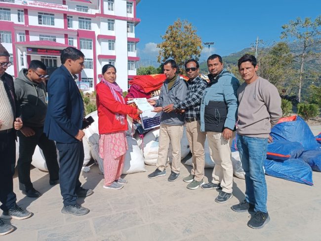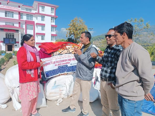 यसैगरी रूकुम पश्चिम जिल्लाको चौरजहारी नगरपालिकाका भूकम्प पीडितलाई २ सय थान त्रिपाल, २ सय थान ब्ल्यांकेट र २ सय थान न्यानो कपडा सेट वितरण गरेको छ।
