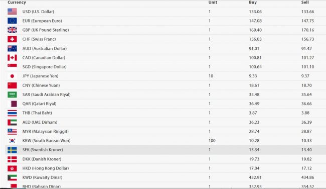 यस्तै अमेरिकी डलरको खरिद दर १३३ रुपैयाँ ०६ पैसा र बिक्री दर १३३ रुपैयाँ ६६ पैसा रहेको छ । युरो एकको खरिद दर १४७ रुपैयाँ ८ पैसा र बिक्री दर १४७ रुपैयाँ ७५ पैसा रहेको छ ।