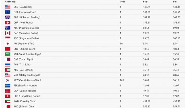 युएई दिराम एकको खरिददर ३६ रूपैयाँ १४ पैसा र बिक्रीदर ३६ रूपैयाँ ३१ पैसा पाइन्छ। मलेसियन रिंगिट एकको खरिददर आइतबार २८ रूपैयाँ ५२ पैसा र बिक्रीदर २८ रूपैयाँ ६५ पैसा पाइन्छ।
