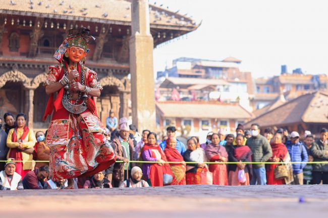 काठमाडाैं।काठमाडौँको नरदेवी श्री श्वेतकाली (ङतभुलु अजिमा)को १२ वर्षे देवी नाच बिहीबार पाटन दरबारस्थित कात्तिक दबडलीमा प्रदर्शनी गर्दै । देवी नाचमा भैरब, कुमारी, शिव द्यः, श्वेतकाली, बाराही, व्याङगिनी, महालक्ष्मी, ब्रम्हायणी, रुद्रायणी, इन्द्रायणी, नारायणी, सिङ्गीनी देवगण हुन्छ ।