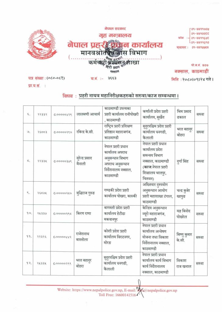 मंगलबार गृह मन्त्रालयले उनीहरुको सरुवा गरेको हो । सरुवामा प्रदेश प्रहरी प्रमुखहरुसहित व्युरोमा रहेका डीआईजीहरुको जिम्मेवारी हेरफेर भएका छन् ।