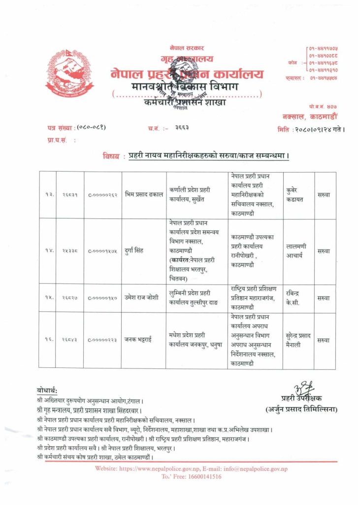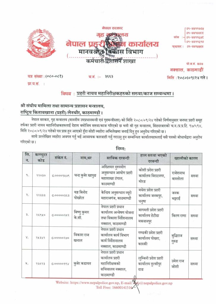 नेपाल प्रहरीका १६ डीआईजीको सरुवा (सूचीसहित)