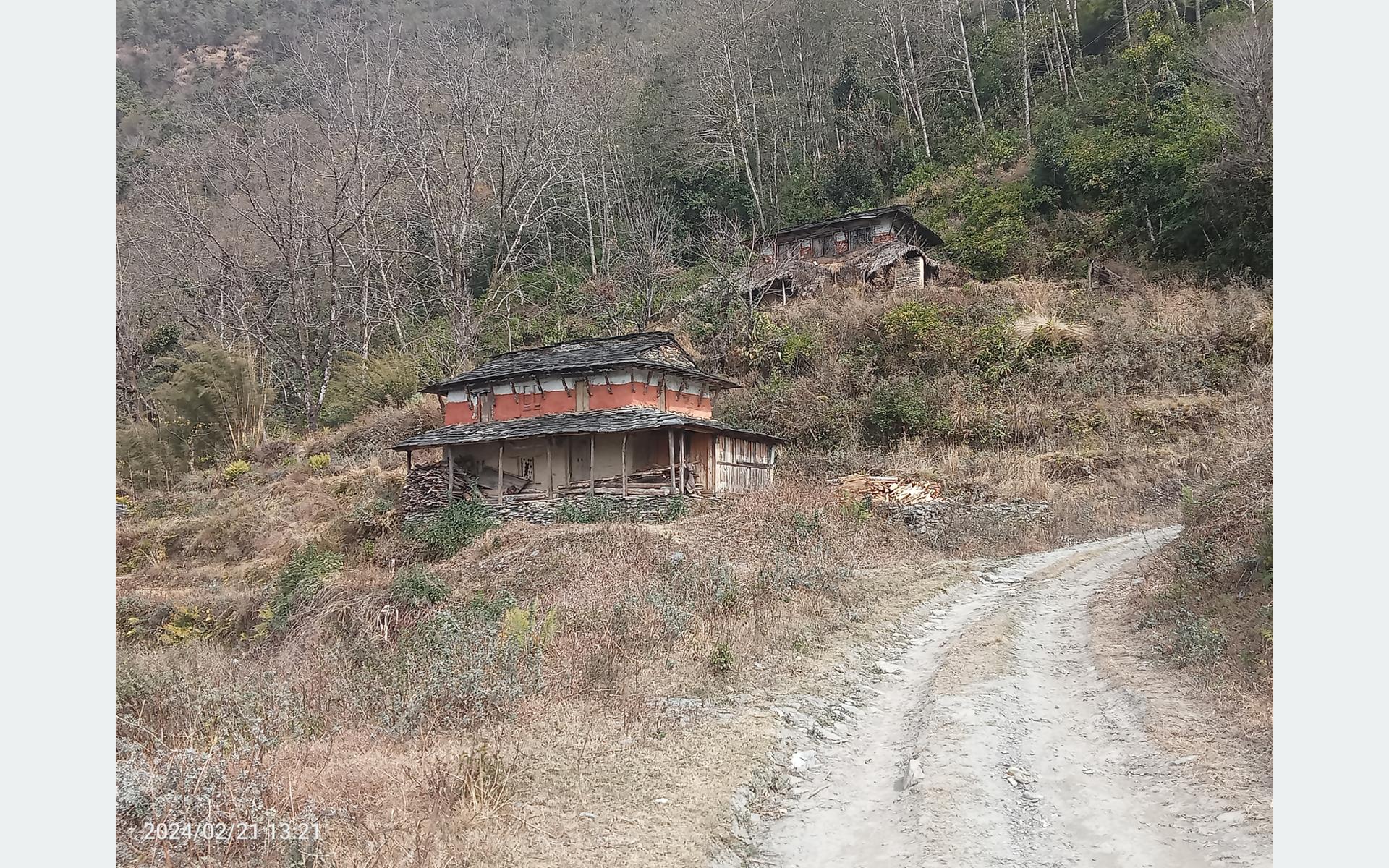 म्याग्दी। घर अगाडीको सडकमा सवारी साधन गुडीरहन्छन्। सवारी साधनमा मानिस कम र खाद्यान्नलगायत अन्य उपभोग्य र निर्माण सामग्री बढी हुन्छन् । सडकबाट धेरै जसो घरमा ताल्चा लगाइएको र घरवरिपरि वनमाराको झाडी देखिन्छ।