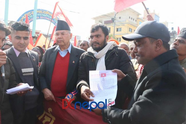 तराई मधेश लगायत अन्य भागबाट पैदल राजधानी आएका मिटरब्याज पीडितहरुले आज प्रदर्शनी मार्गबाट थालेको आन्दोलनमा खनाल पुगेर सहभागीता जनाएका हुन्।